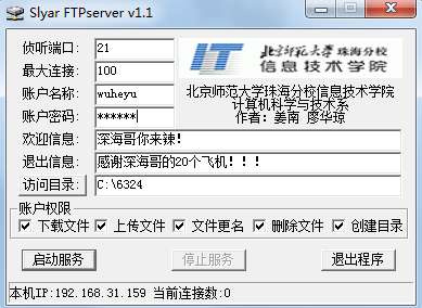 两个同学配合完成,A同学搭建FTP服务器,并新建用户,并设置登陆密码