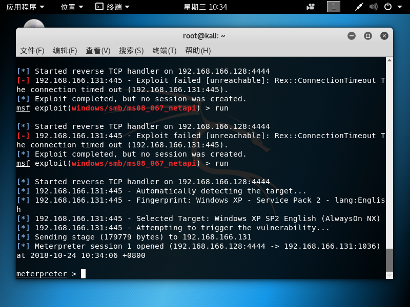 执行exploit命令后得到一个meterpreter命令行交互窗口