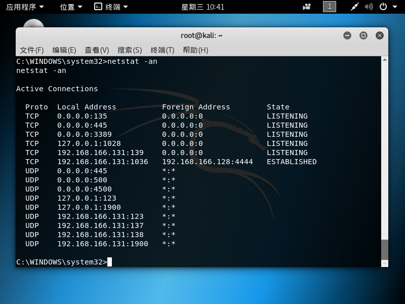使用netstat -an命令查看端口是否开放,从图中可以看到已经开放3389端口。