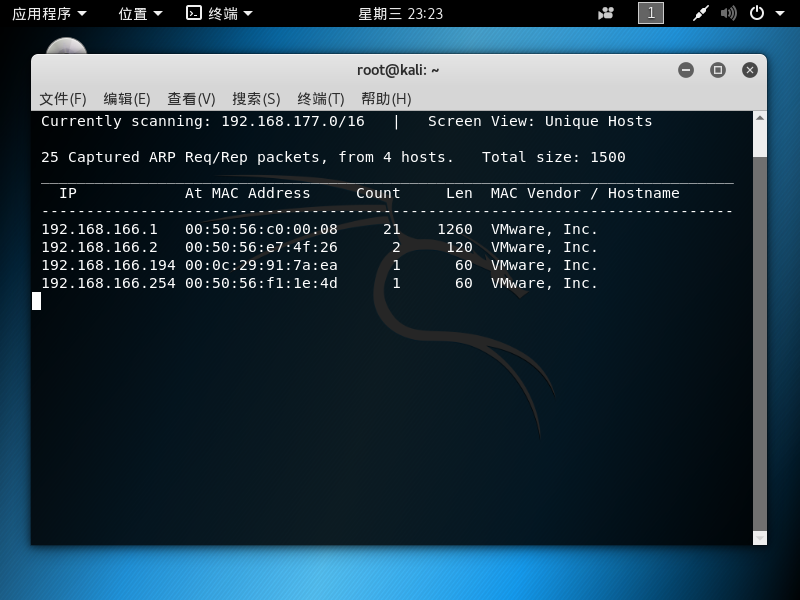 一、在攻击者机器上,使用Nmap或netdiscover工具扫描子网的机器,发现靶机的IP地址。【实验中,大家环境不同,发现的IP地址和图中不一定一致】