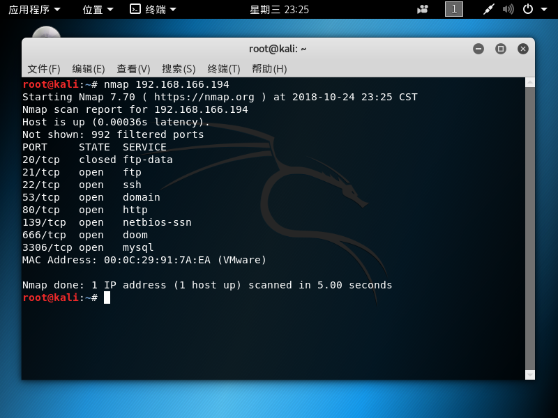 二、使用Nmap工具扫描目标IP地址,发现其开放端口。