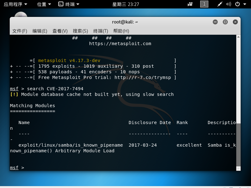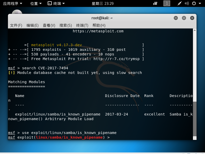 三、启动MSF搜索CVE-2017-7494相关攻击模块