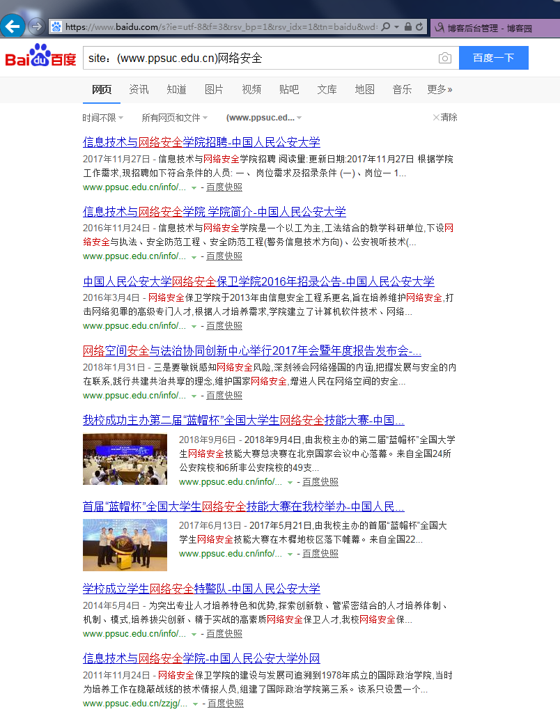用百度或google搜索www.ppsuc.edu.cn中所有包含“网络安全”的网页。(附截图)