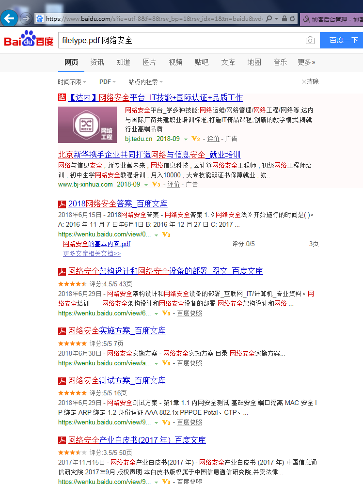 用百度或google搜索所有包含“网络安全”的pdf文档(附截图)