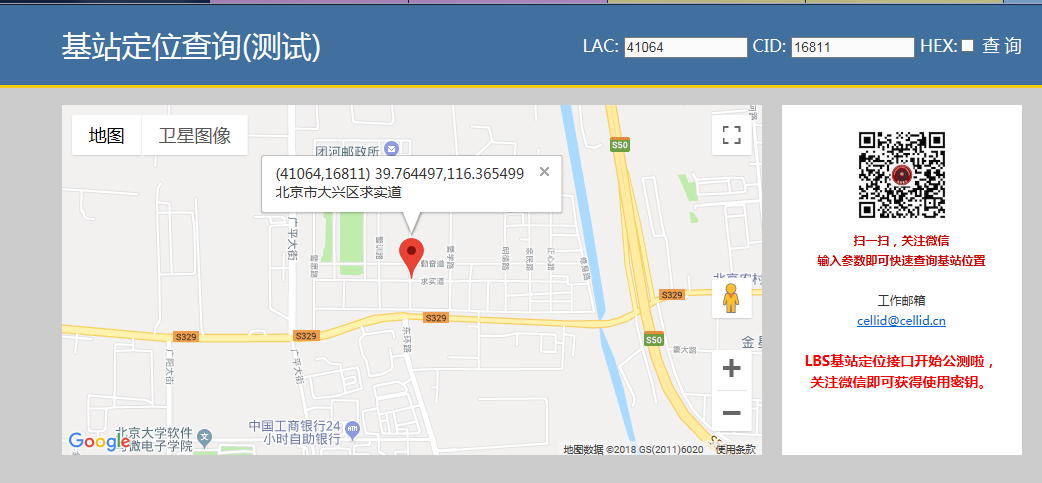 在一个案件中,获取了犯罪嫌疑人的LAC是41064,CID是16811,这个人可能在什么地方?(附截图)