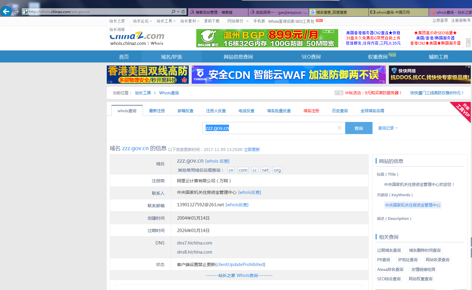 获取www.zzz.gov.cn域名注册时,注册人的邮箱是(附截图)