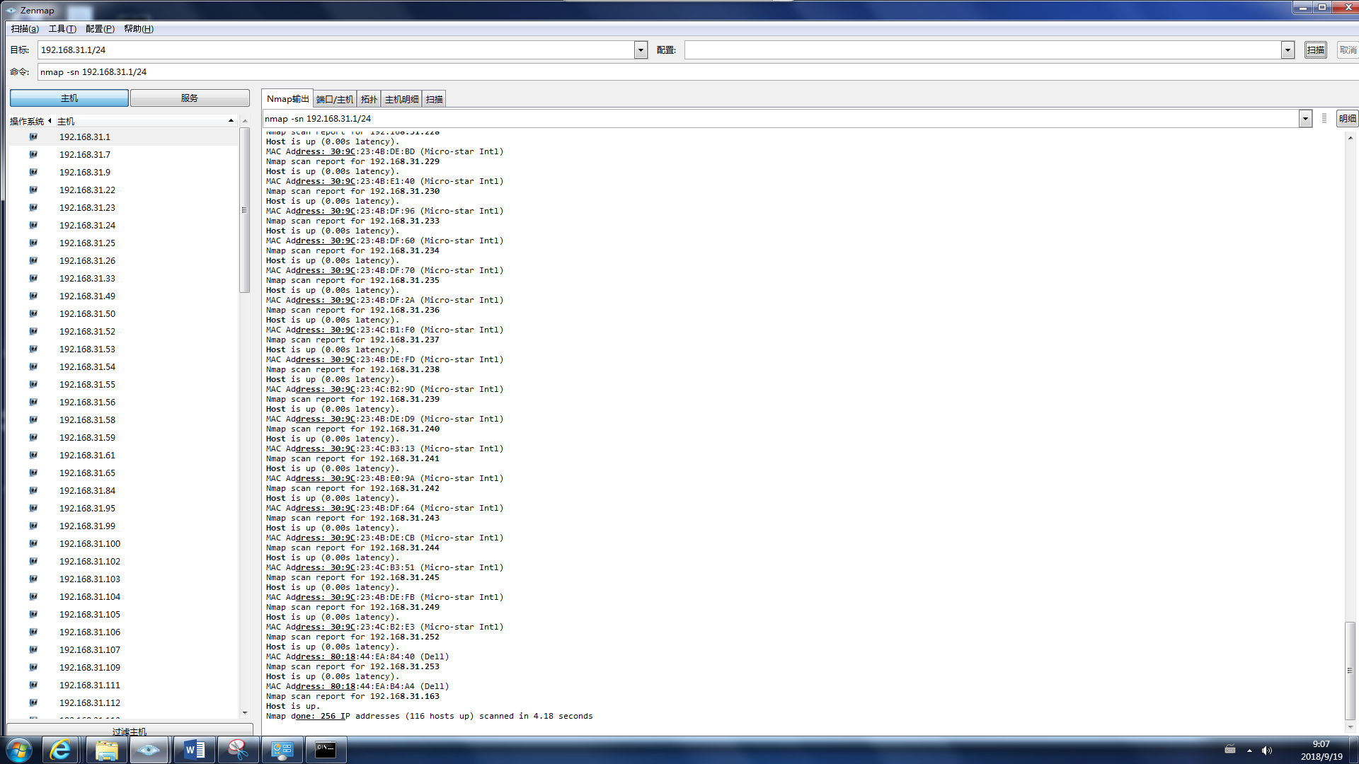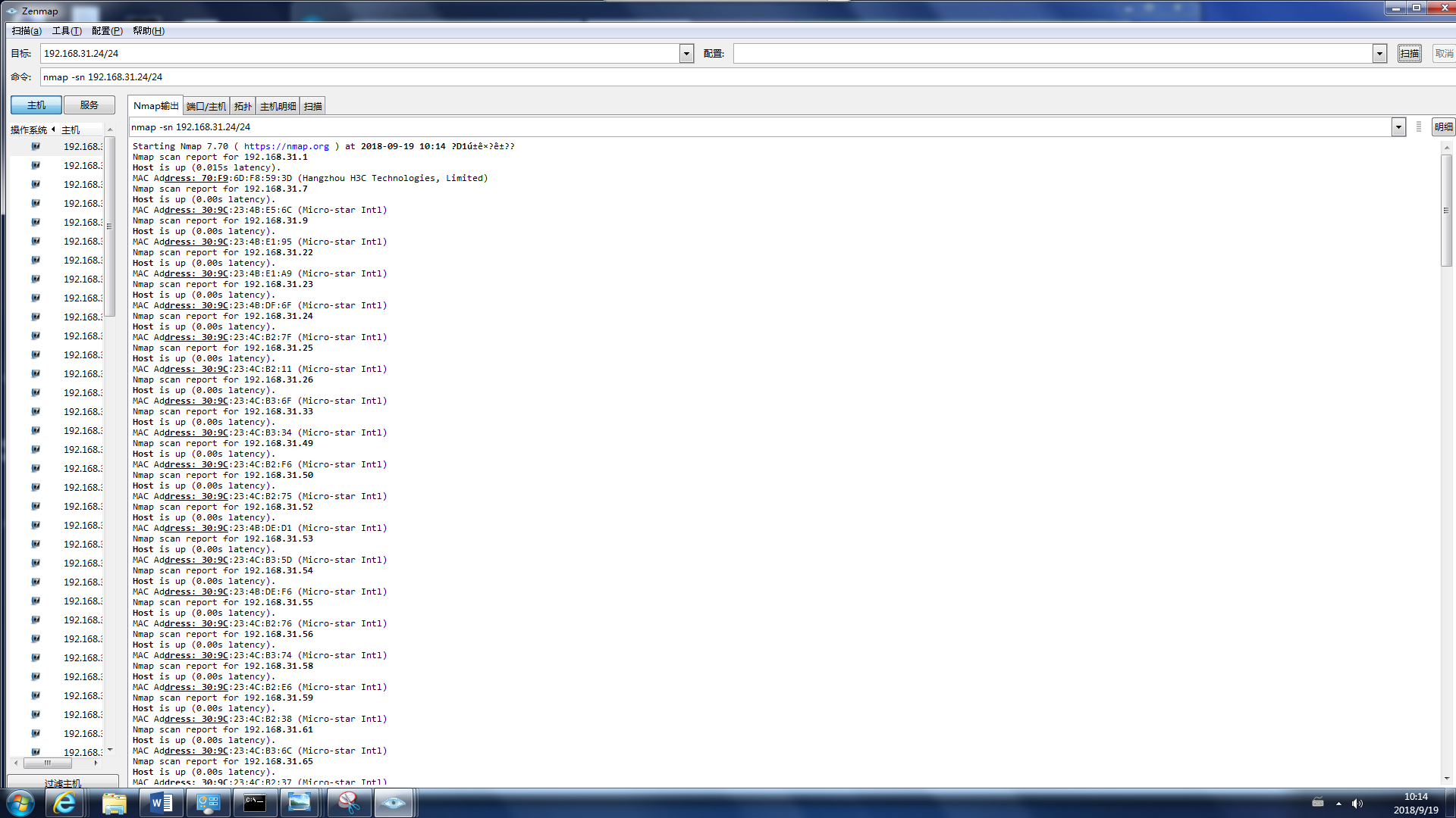 请查询本机的IP地址和子网掩码,并在局域网中扫描本网段内的所有存活主机(附搜索截图)