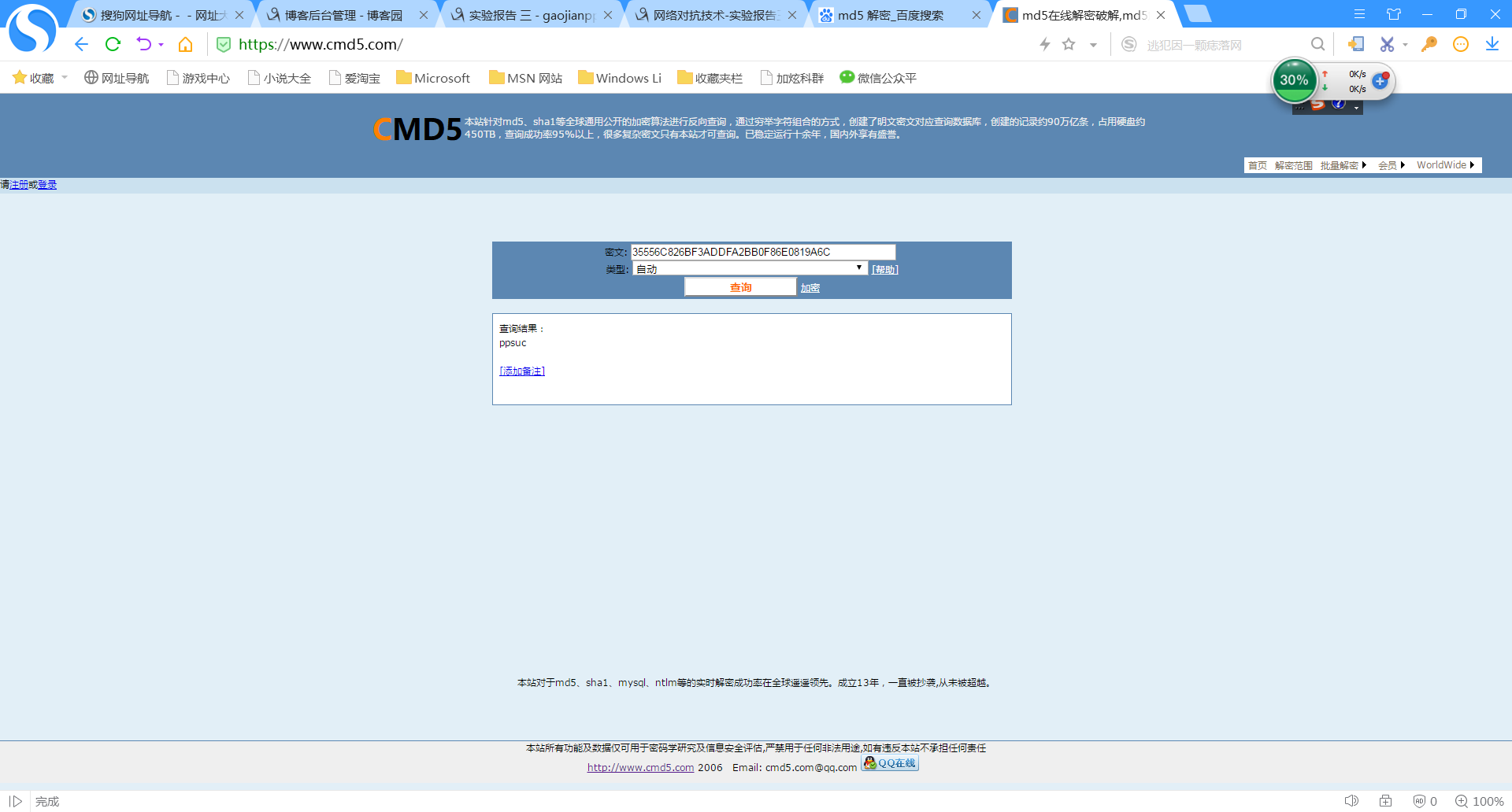 1. 请解密以下字符串35556C826BF3ADDFA2BB0F86E0819A6C。(附截图)