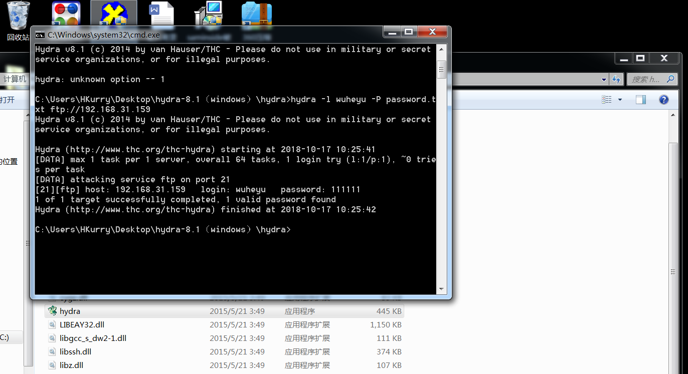 2.B同学使用hydra 对ftp用户的密码进行字典破解。hydra 中有关于该软件的使用命令语法。字典文件需要自己去生成。