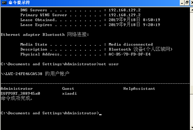 - net user xiaodi /del删除用户名为xiaodi的用户