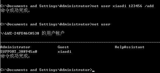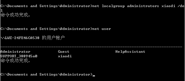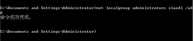 - net localgroup administrators xiaodi /add添加用户名为xiaodi的用户到管理员组