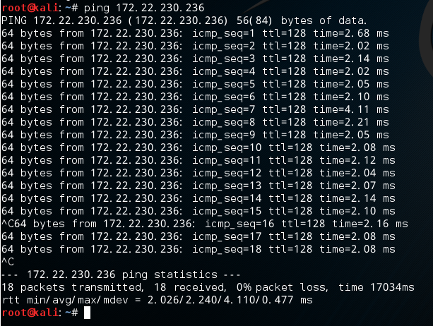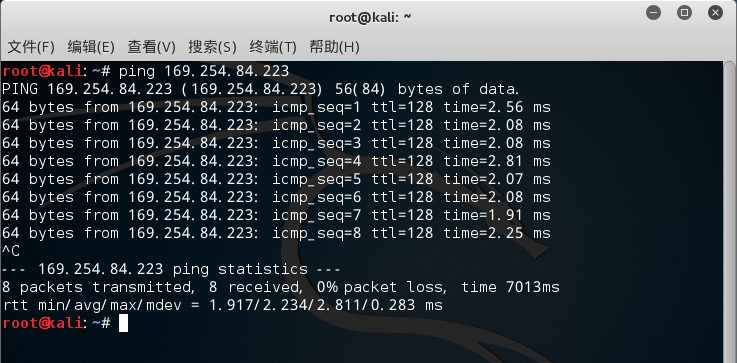 - Ping 主机可达 Ctrl+c键来强行终止当前程序