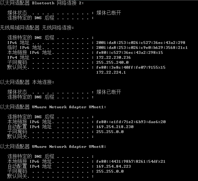 - 安装windows和linux(kali)两个虚拟机,均采用NAT网络模式,查看主机与两个虚拟机器的IP地址,并确保其连通性。同时为两个虚拟机做一个快照。