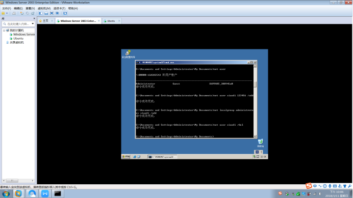 net localgroup administrators xiaodi /add添加用户名为xiaodi的用户到管理员组
