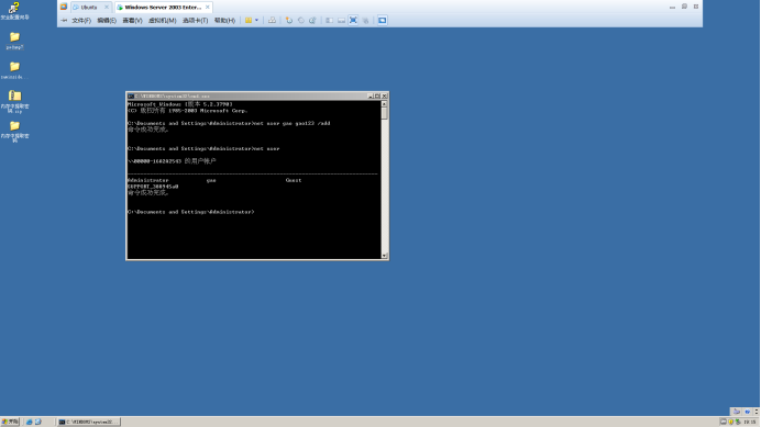 1.在windows xp系统中使用 net user gao gao123 /add添加用户gao,密码gao123的账户(用户名和密码可以自己设定);并使用net user命令确定用户添加成功。