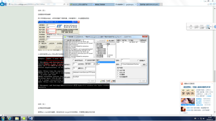 2.B同学使用hydra 对ftp用户的密码进行字典破解。hydra 中有关于该软件的使用命令语法。字典文件需要自己去生成。