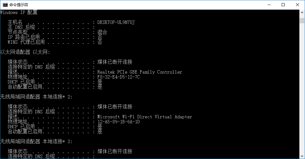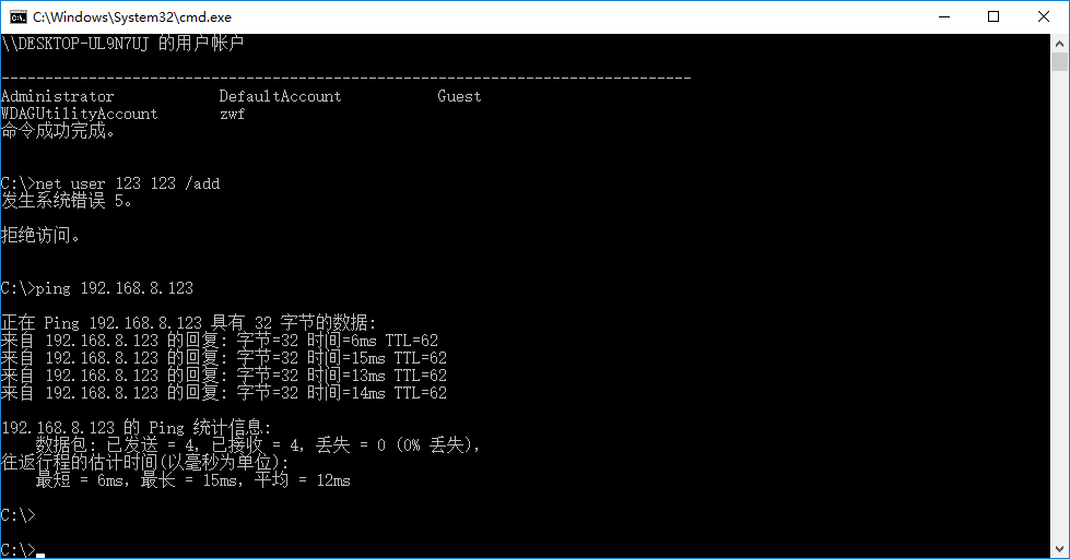 1、Ping 主机可达 Ctrl+c键来强行终止当前程序