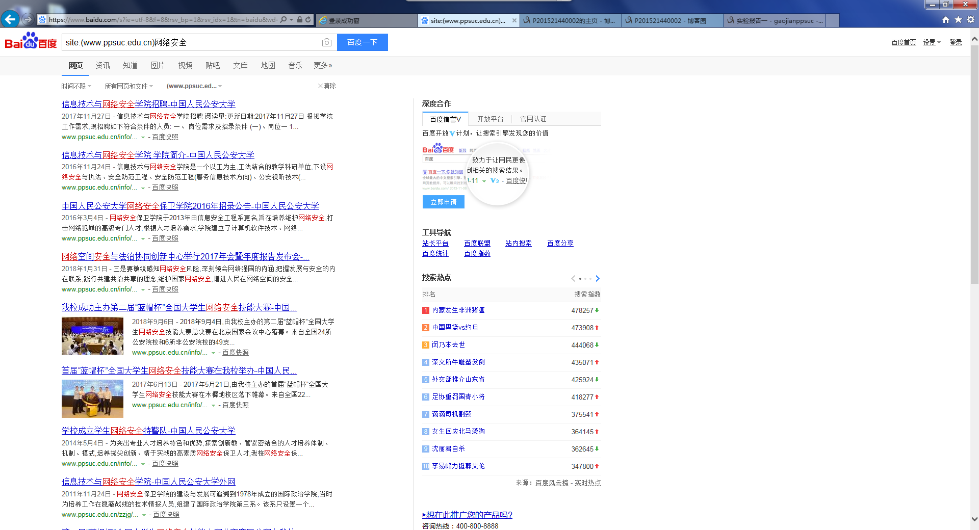 用百度或google搜索www.ppsuc.edu.cn中所有包含“网络安全”的网页。(附截图)