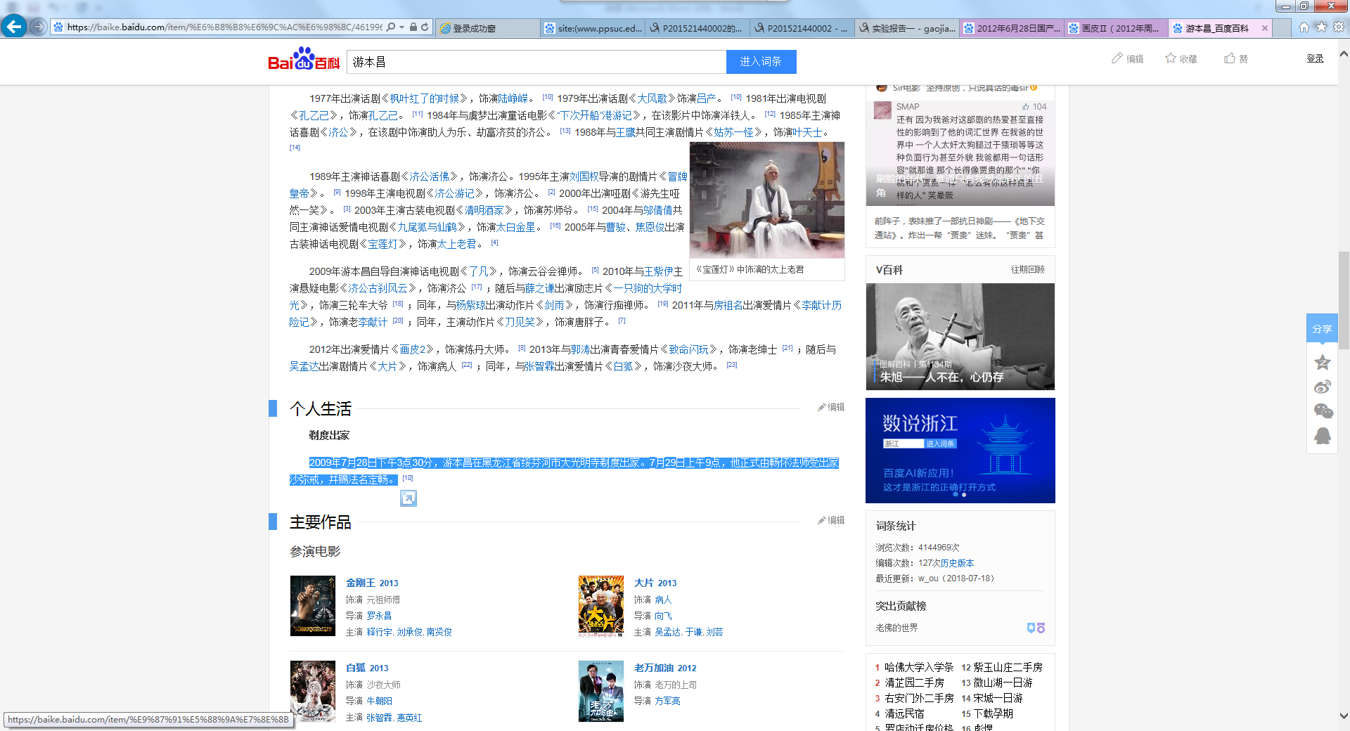6月28日是小王的生日,他是中国人民公安大学2008年入学的本科生。在大四这年,为了庆祝生日,他和朋友们一起看了一场刚好在生日这天上映的国产玄幻电影。在这场电影中,饰演“炼丹大师”角色的演员曾经出家,请问他当时的法号是什么?(附截图)