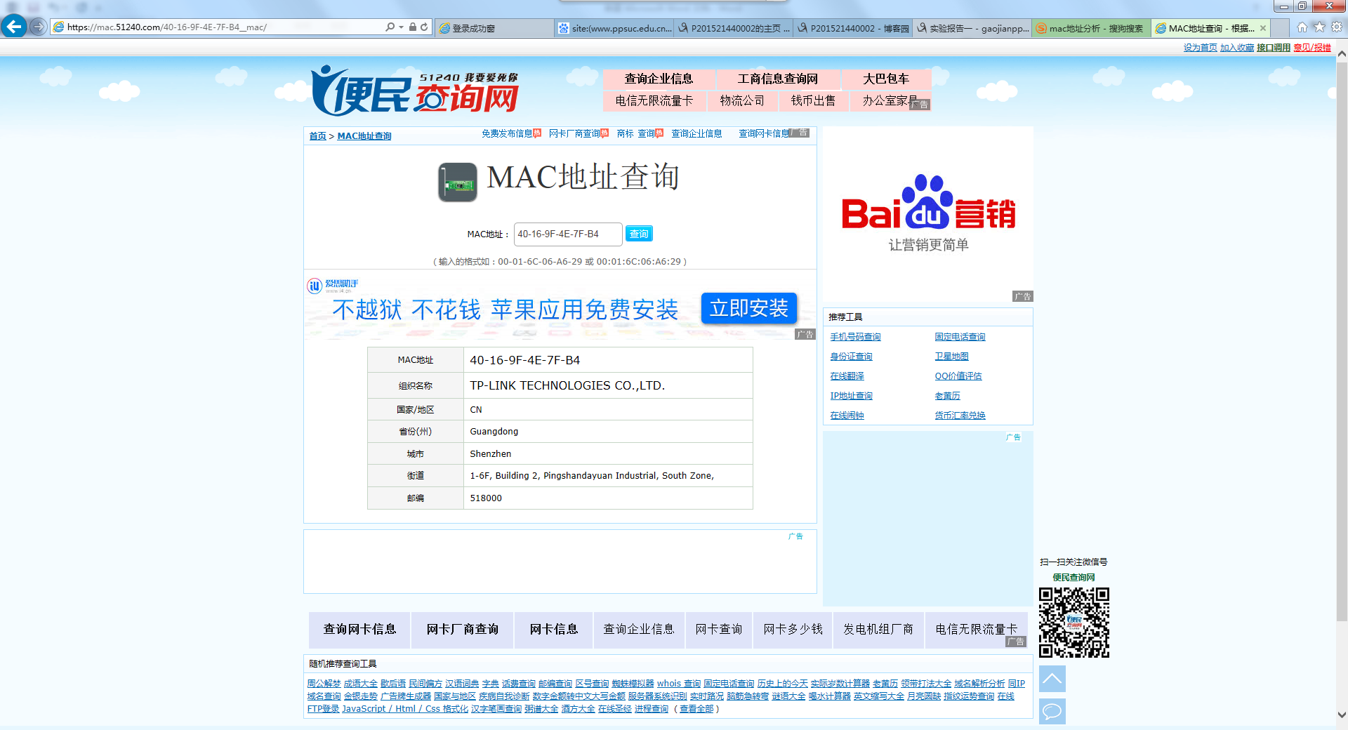 在一个案件中,获取了犯罪嫌疑人的一个MAC地址:40-16-9F-4E-7F-B4,请查询该MAC地址对应的厂商是(附截图)
