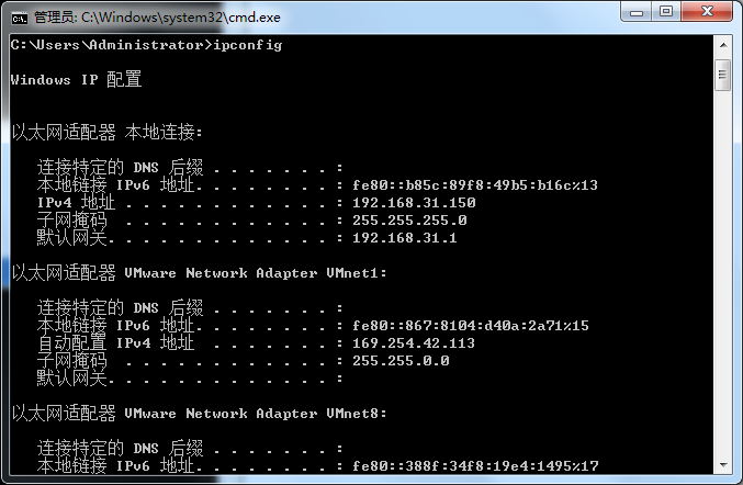 用ipconfig查询本机