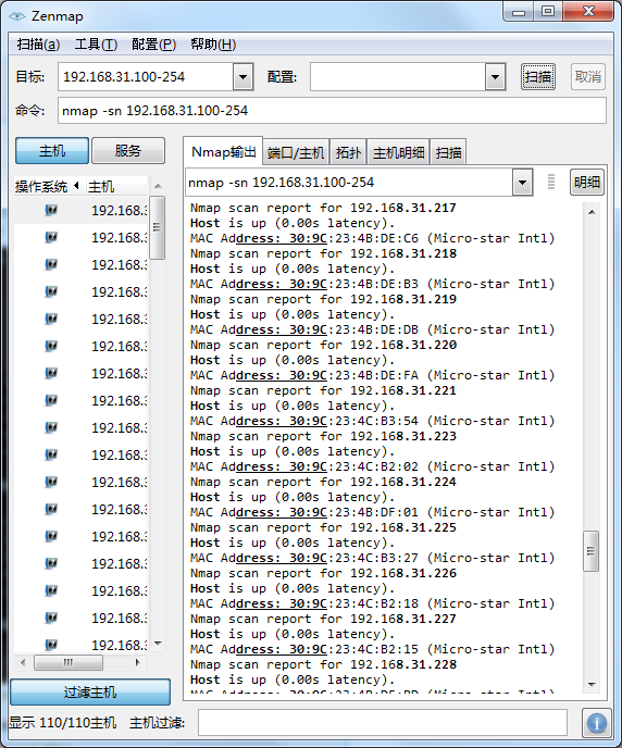 用nmap扫描局域网主机