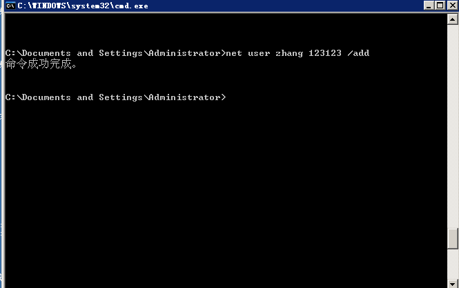 net user zhang 123123 /add添加用户名为zhang,密码为123123的用户