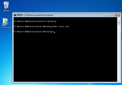 Del命令的作用是删除文件。删除桌面上的text.txt,在cmd命令框里没有反应,但是已经执行了删除命令。