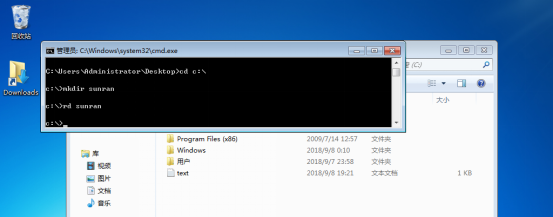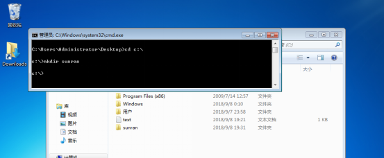 Mkdir命令的作用是建立文件夹。在c盘根目录下建立sunran文件夹。在cmd命令框里没有反应,但是已经执行了命令。