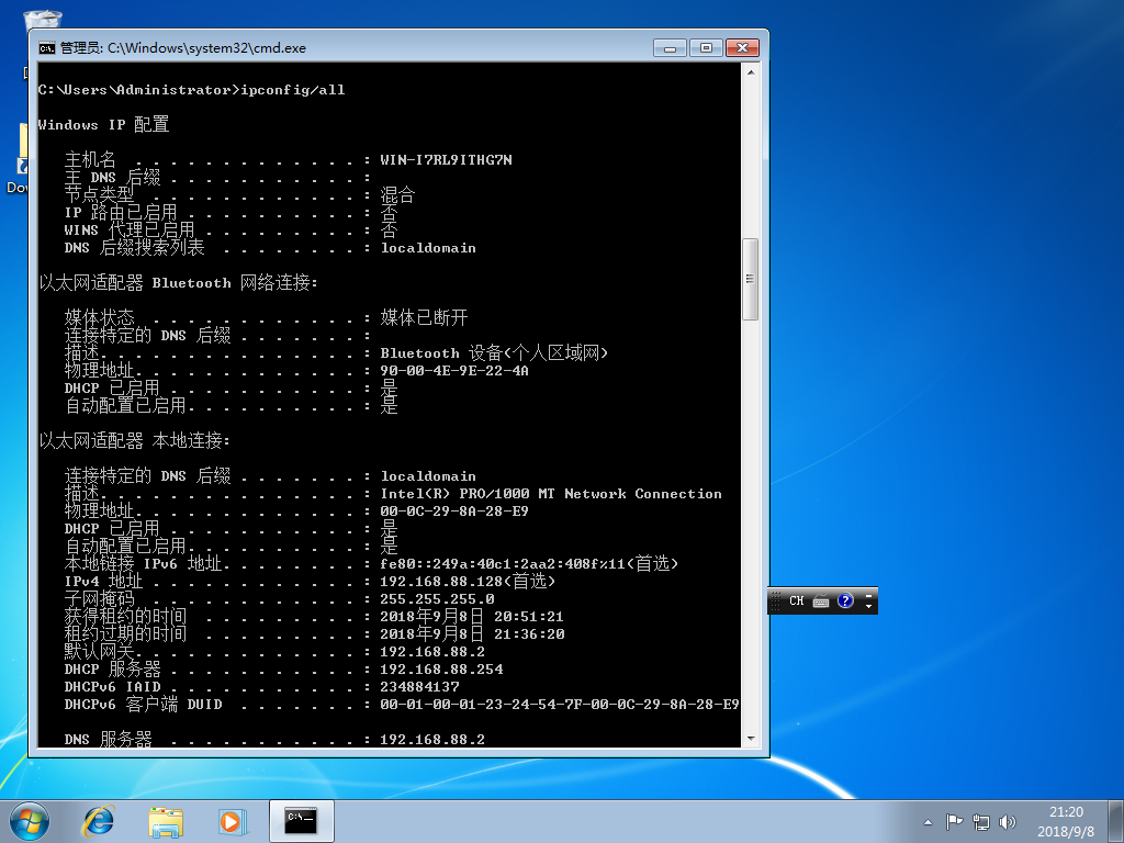 主机的ip地址是172.22.136.3,在虚拟机的虚拟网络编辑器中选择VMnet8 NAT模式。windows虚拟机的ip地址是192.168.88.128。用虚拟机ping主机: