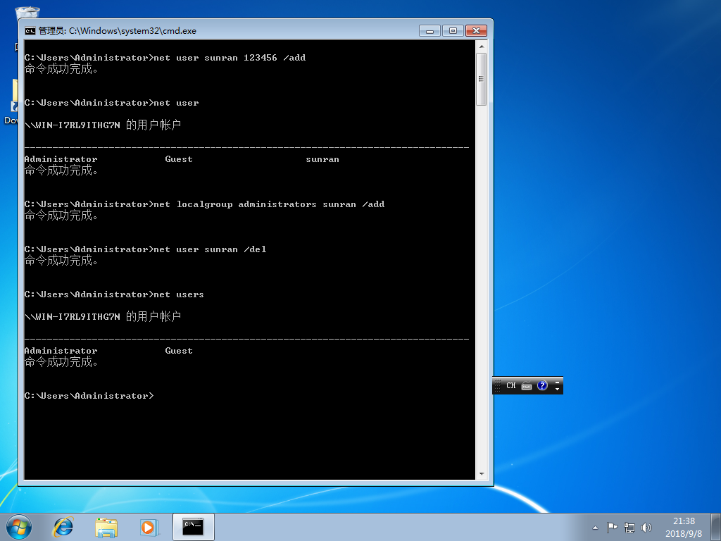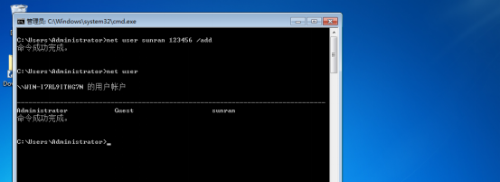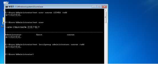 19.net localgroup administrators sunran /add添加用户名为sunran的用户到管理员组
