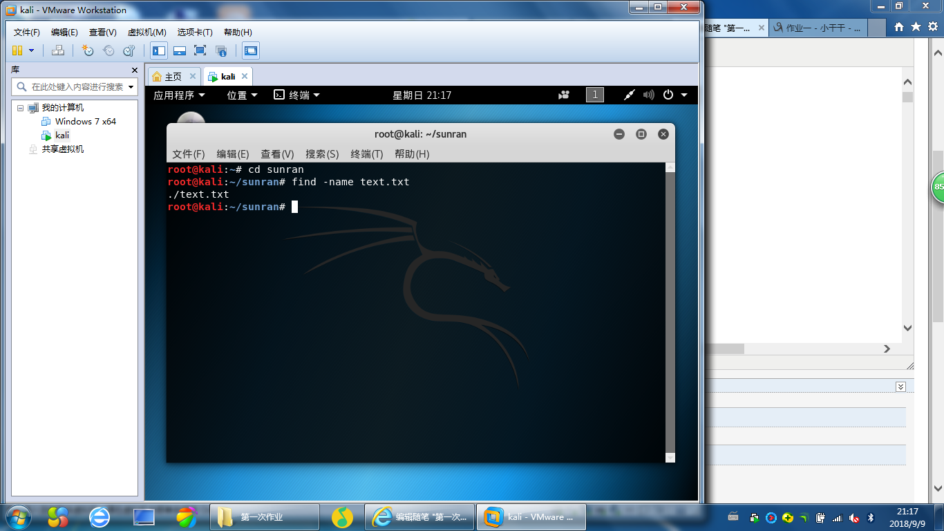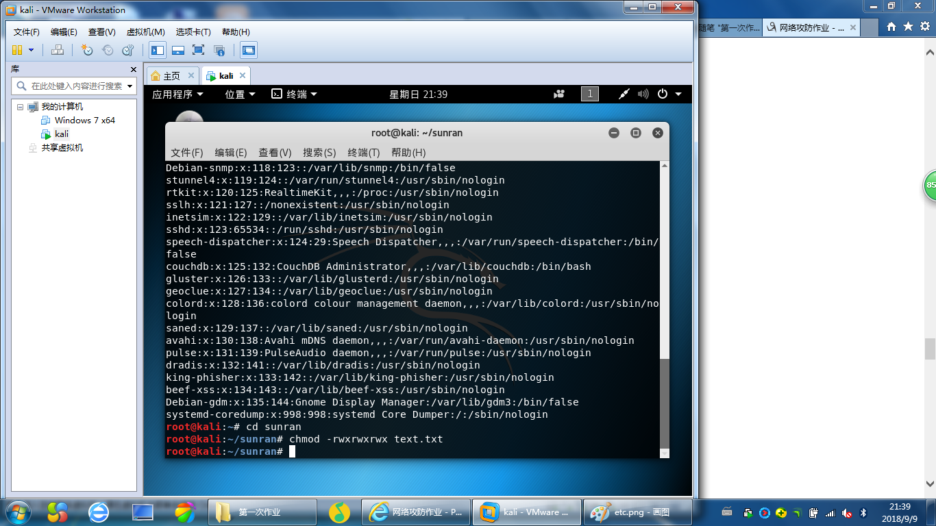3.建立文件夹sunran,文件夹中text.txt,将文件权限改为rwxrwxrwx。