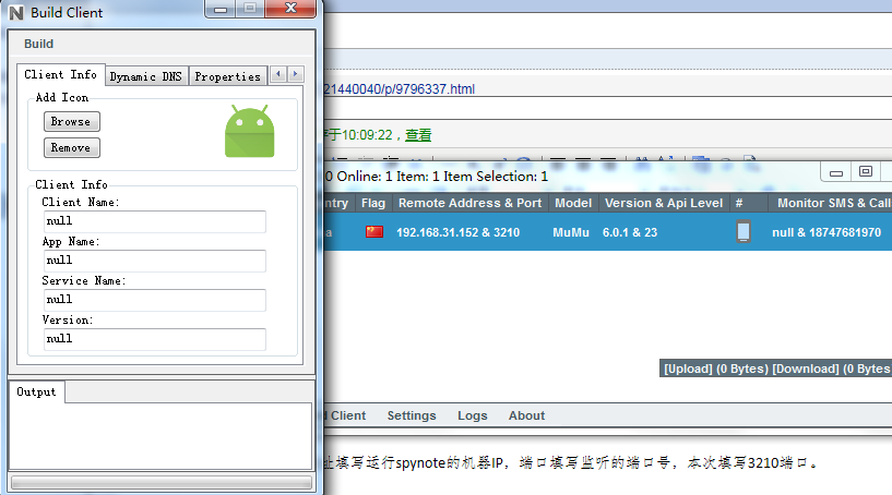 (2)配置回连IP和端口,IP地址填写运行spynote的机器IP,端口填写监听的端口号,本次填写3210端口。