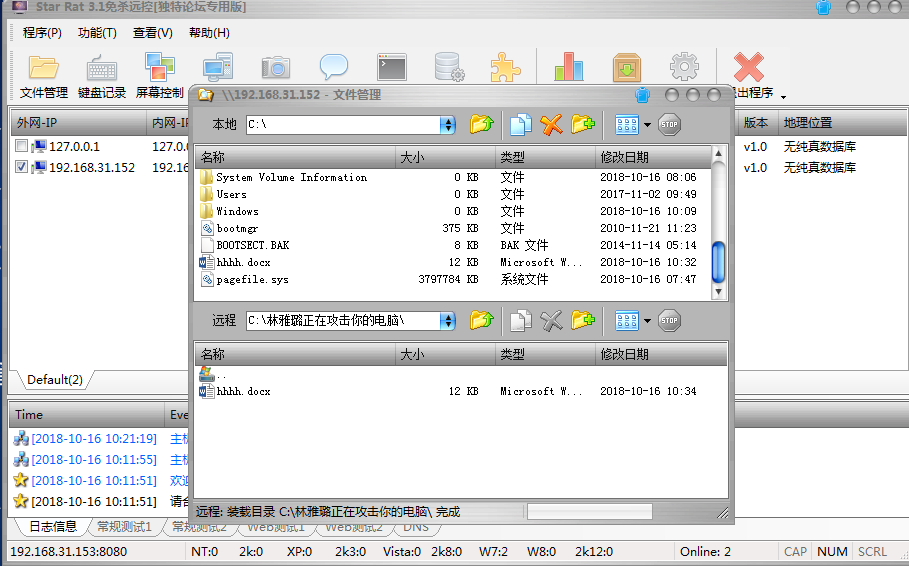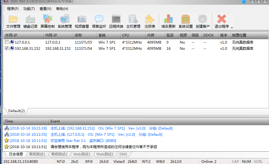 攻击者的机器. (同学A) 打开V2014.exe程序或则star RAT,这两个木马功能类似。