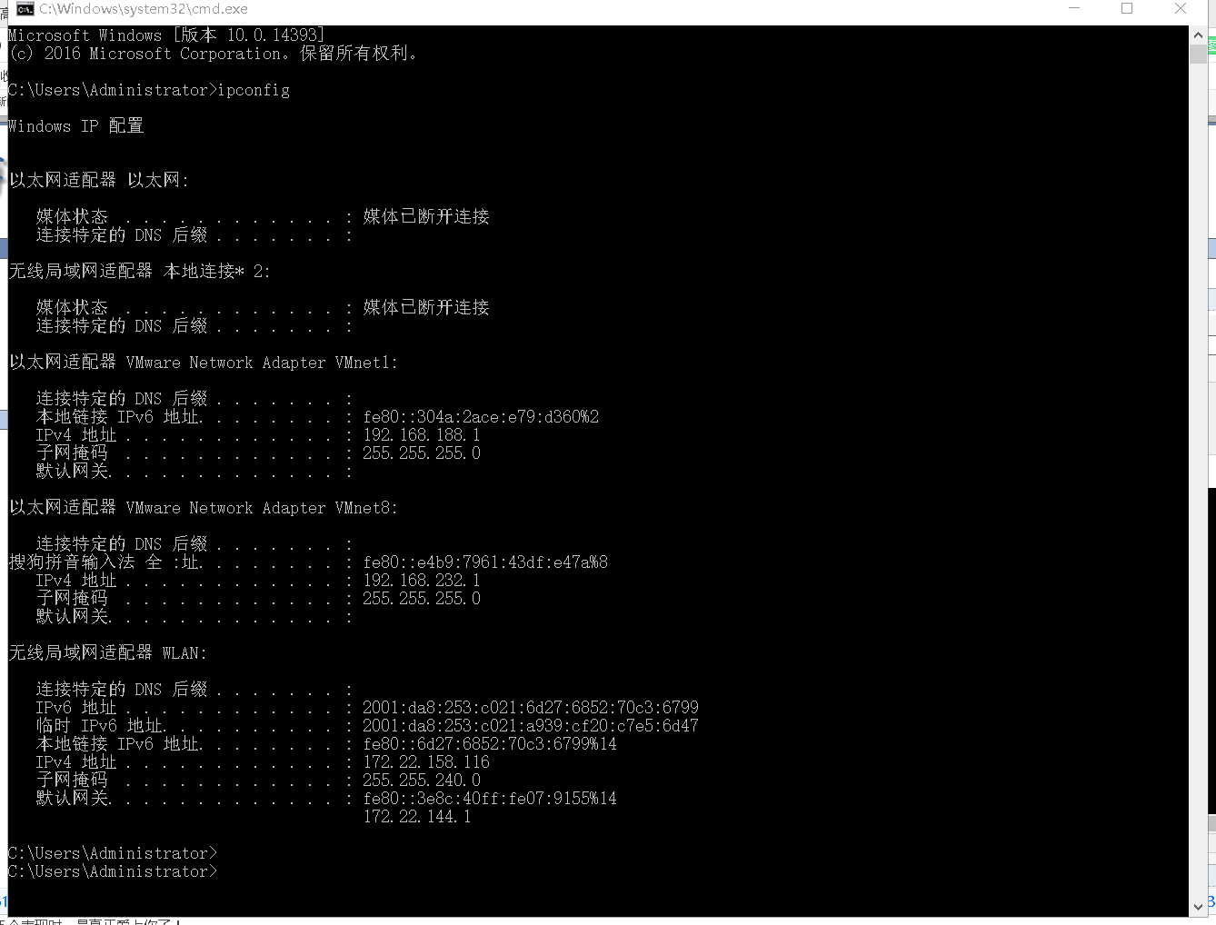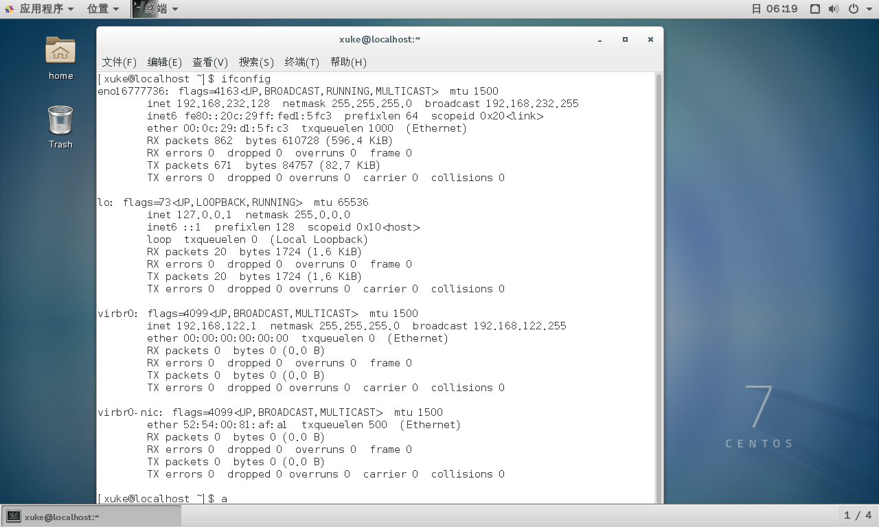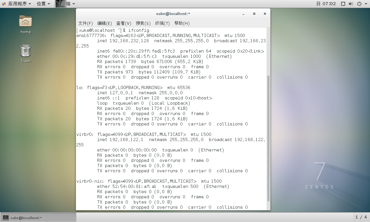 安装好xp和centos虚拟机之后,查看这三者(包括主机)的ip地址