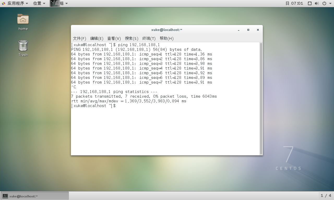 1、Ping 主机可达 Ctrl+c键来强行终止当前程序