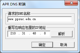 欺骗成功后,在被害机器上查看www.ppsuc.edu.cn的IP 查看是否被解析到了,指定的IP地址上。