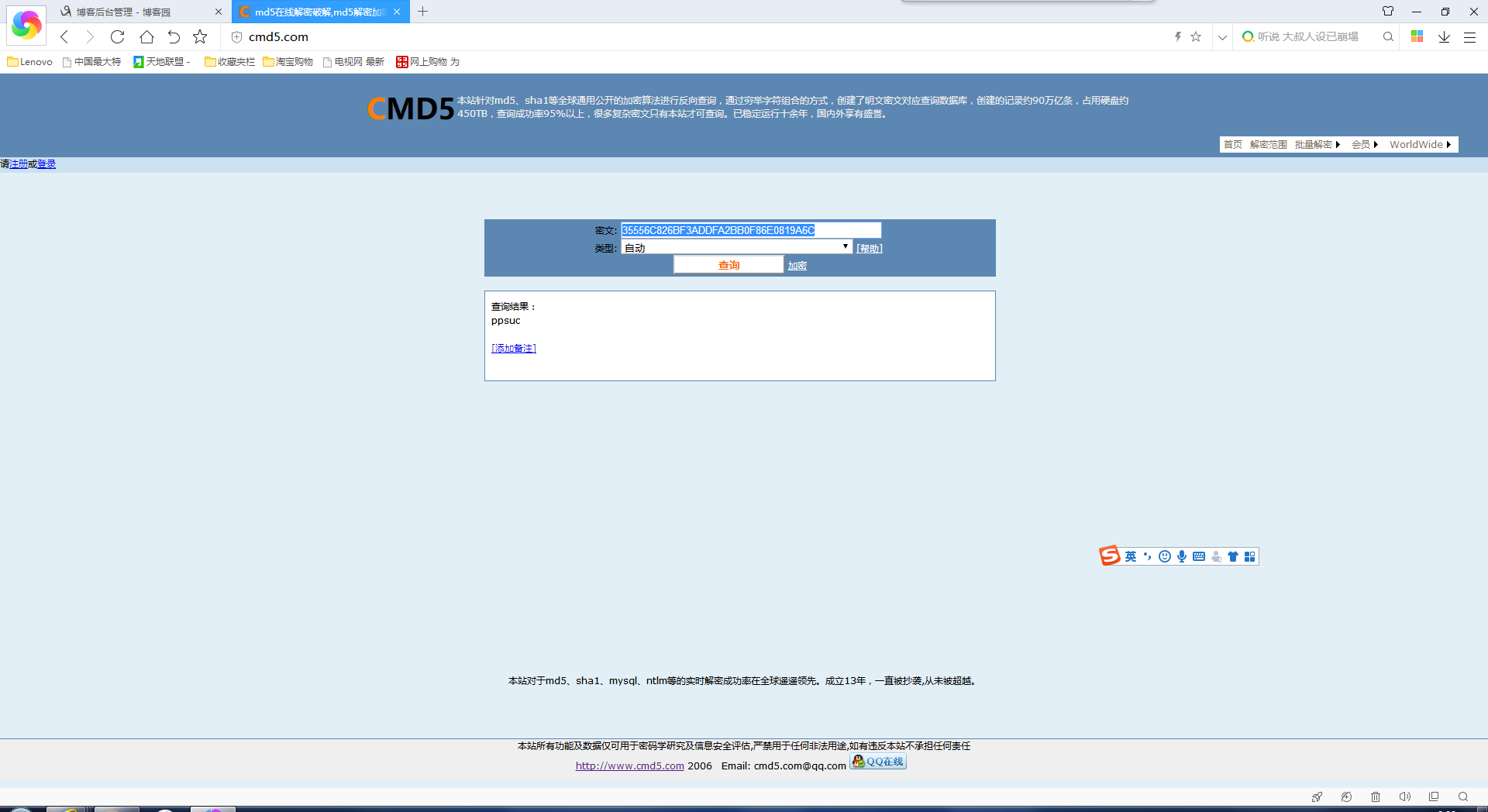 1. 请解密以下字符串35556C826BF3ADDFA2BB0F86E0819A6C。(附截图)