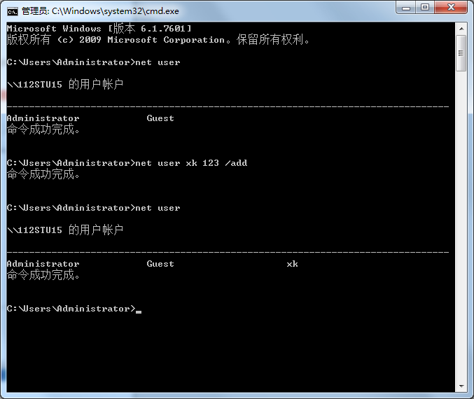 1.在windows xp系统中使用 net user gao gao123 /add添加用户gao,密码gao123的账户(用户名和密码可以自己设定);并使用net user命令确定用户添加成功。