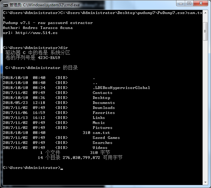 2.使用pwdump软件导出本机的sam文件
