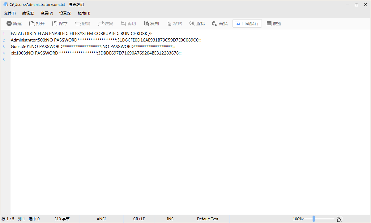 sam文件中的新添加账户及其密码的加密后的字符串
