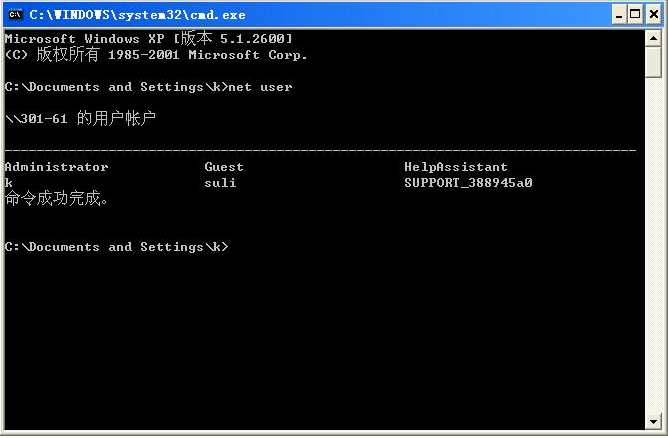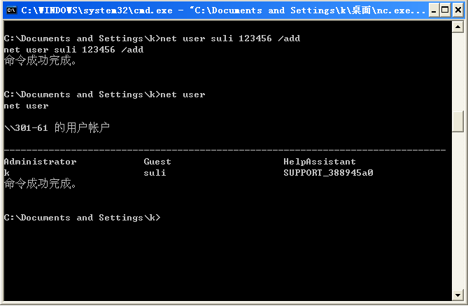 net user xth xth /add //新建立了一个用户名为zjl的用户