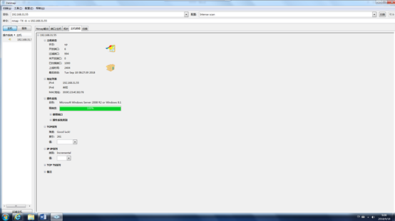 选择一个存活IP地址,扫描所开放的端口(分别用ping扫描,syn扫描尝试),并查询常用端口所对应的服务及操作系统信息。