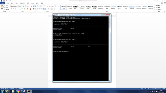 1.在windows 系统中使用 net user yhf 123 /add添加用户yhf,密码123的账户;并使用net user命令确定用户添加成功。