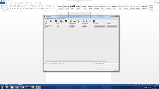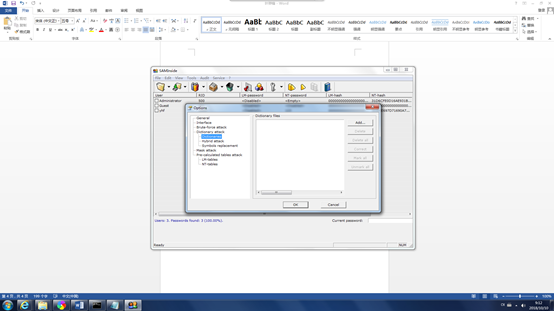 3.使用saminside软件将sam.txt导入,并进行破解,注意配置字典破解和暴力破解