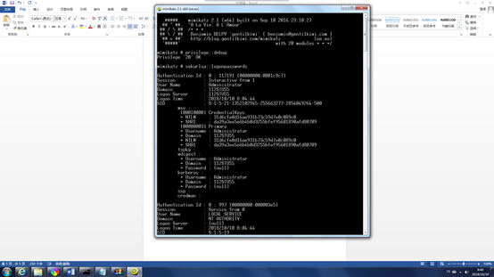 使用minikatz工具对系统的密码进行提取,涉及两条命令