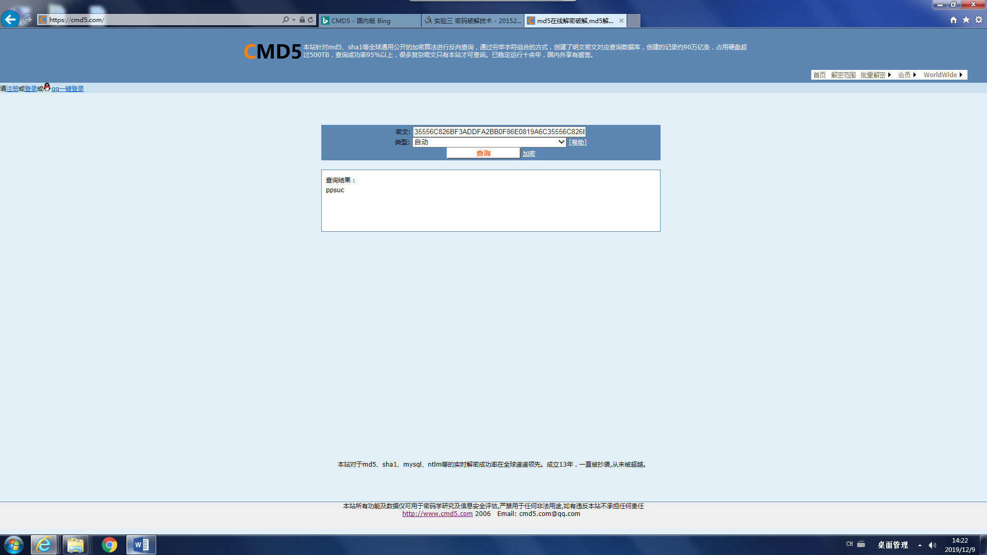 1. 请解密以下字符串35556C826BF3ADDFA2BB0F86E0819A6C。(附截图)